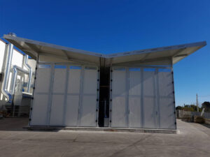 Inoltre, per la sicurezza degli operatori, tutti gli accessi sono dotati di dispositivi a microinterruttore e segnalatori luminosi collegati a un sistema di controllo sequenziale gestito da PLC.