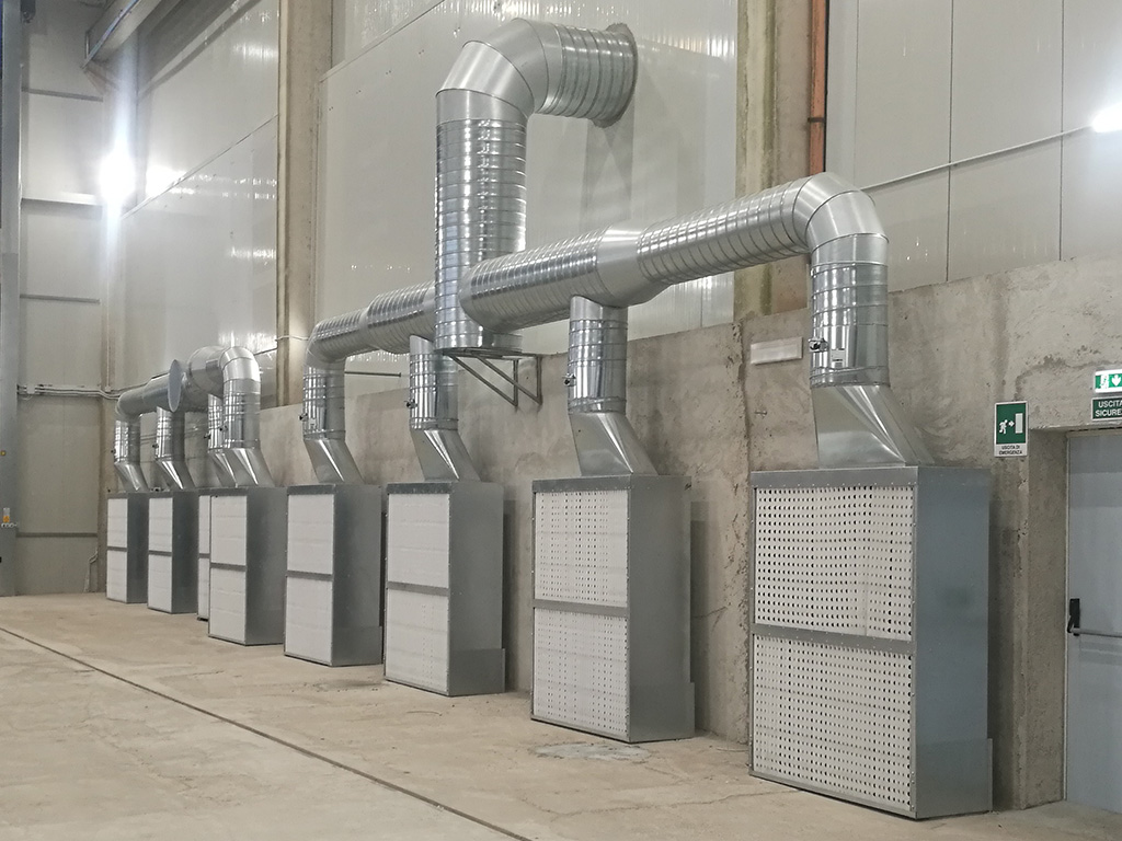 • Immissione dell’Aria Filtrata: L’aria filtrata viene rilasciata in atmosfera rispettando i limiti legislativi.